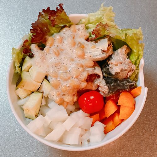 と分けて摂取していたが、ふと「1食でまとめて食べた方が栄養バランスが良いのでは?」と思い、朝と昼に魚と納豆を一緒に食べるようにしてみた。