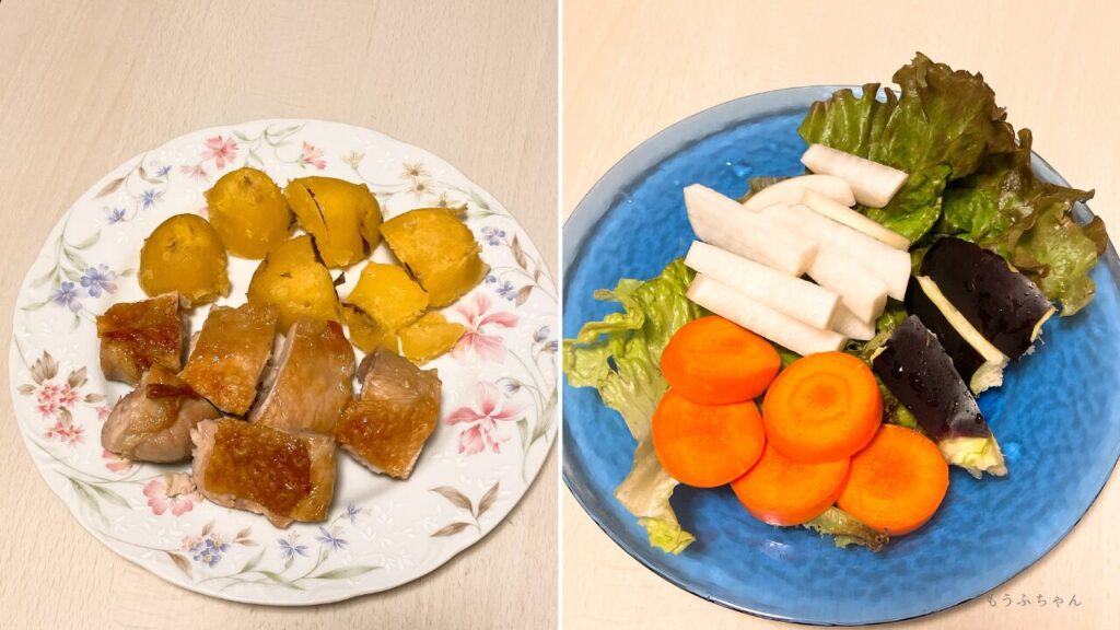 食事では、夜に鶏もも肉を200gとりすぎた反省と、主食をじゃがいもに変えた新しい試み。