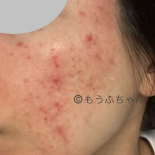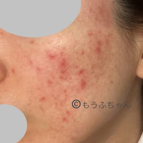 - 反応:口周り・顎にニキビのようなブツブツ。