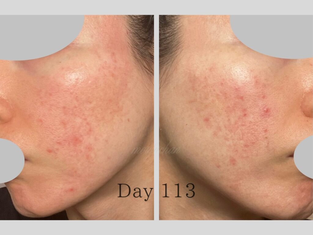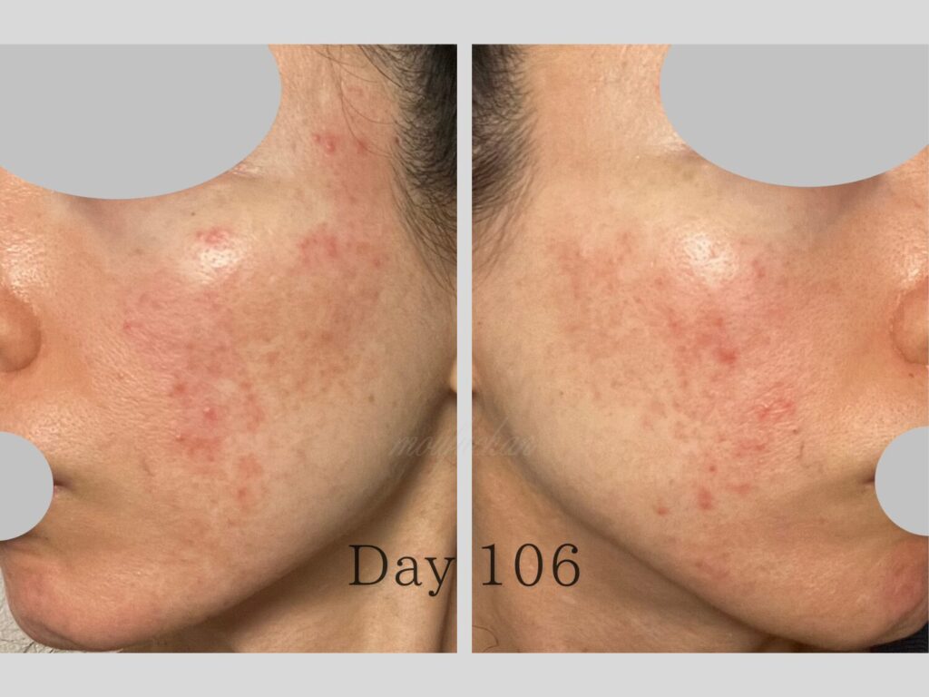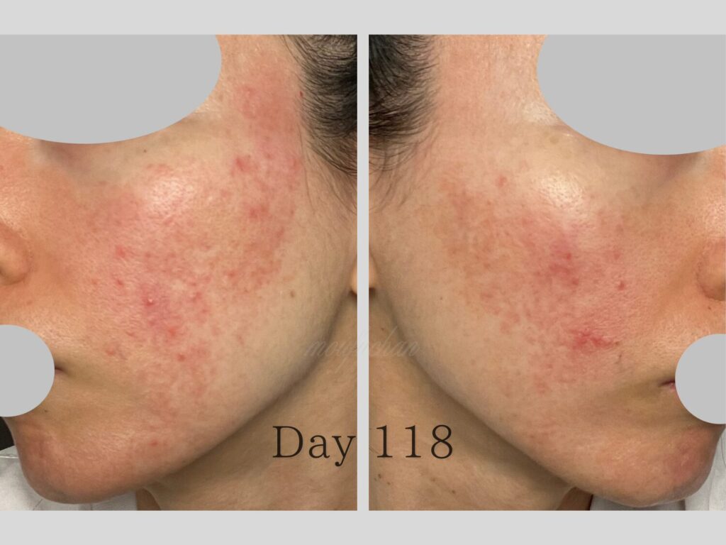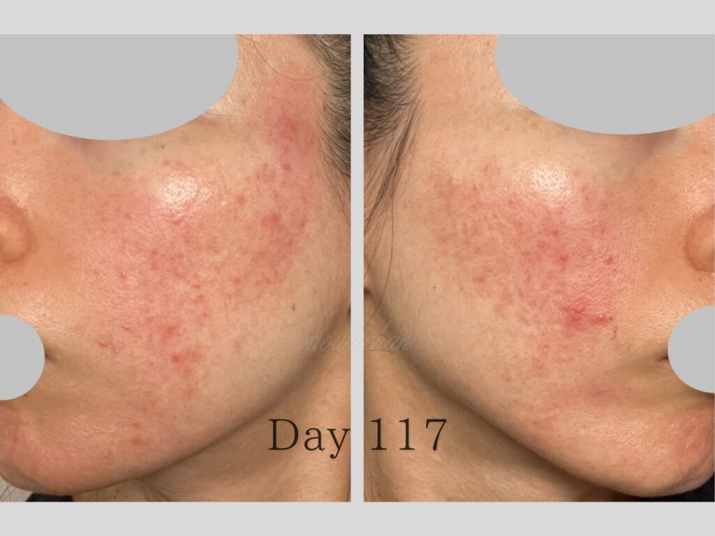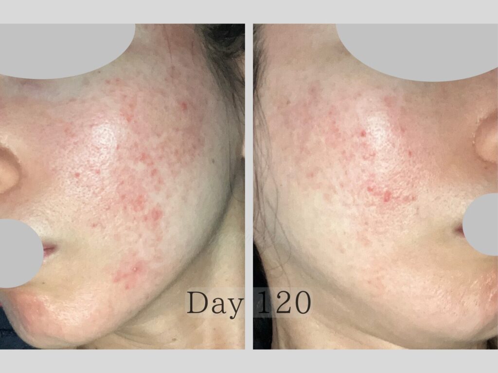 4ヶ月目は、赤ら顔の改善が見え肌の回復力が少しずつ戻り始めた“転換期”でした。